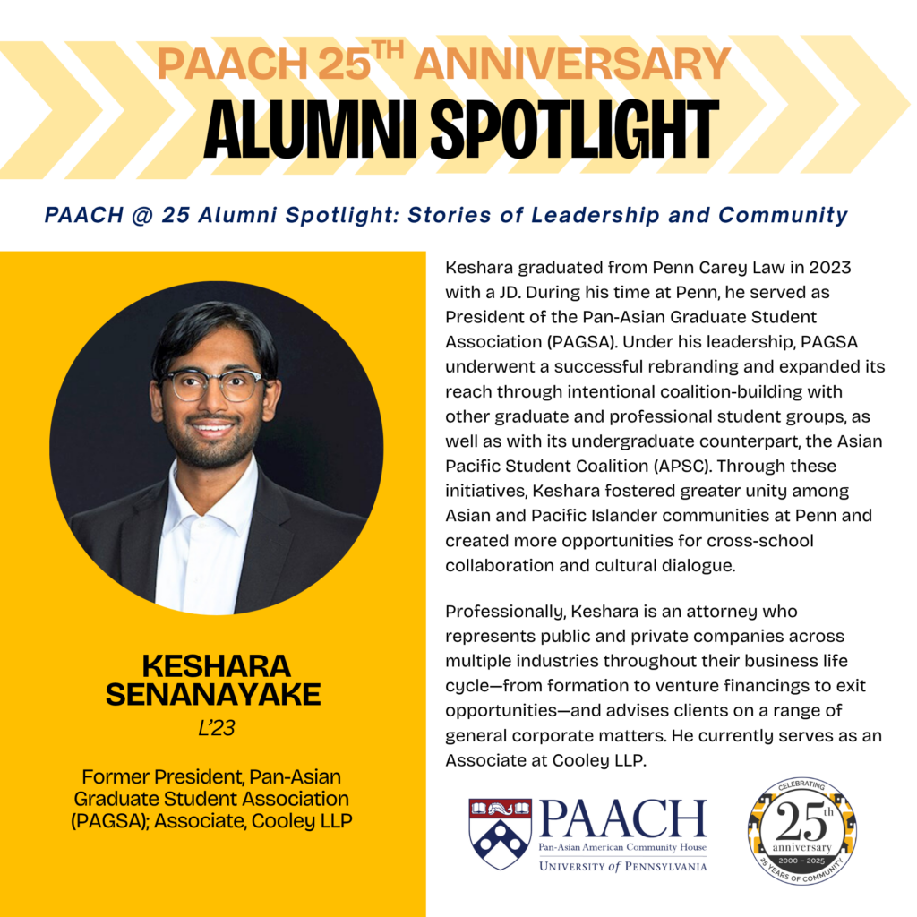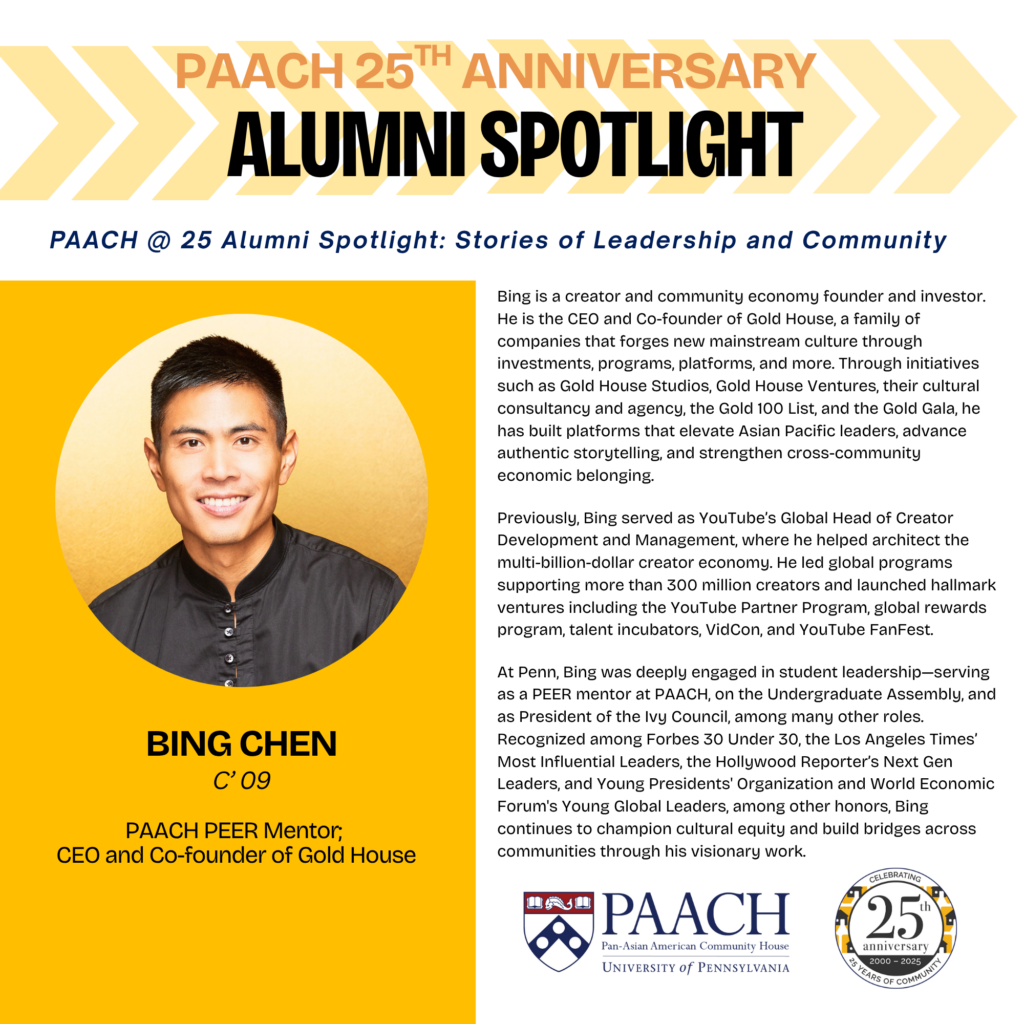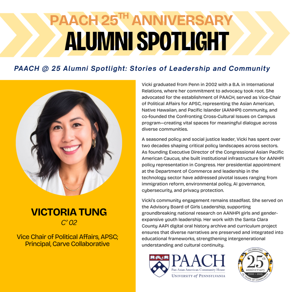 As part of PAACH’s 25th Anniversary, the Alumni Spotlight Program features 10–12 alumni whose dedication, advocacy, and leadership have shaped PAACH and the API community at Penn and beyond. Through themed panels and featured profiles, we celebrate their impact across generations and inspire current and future leaders.