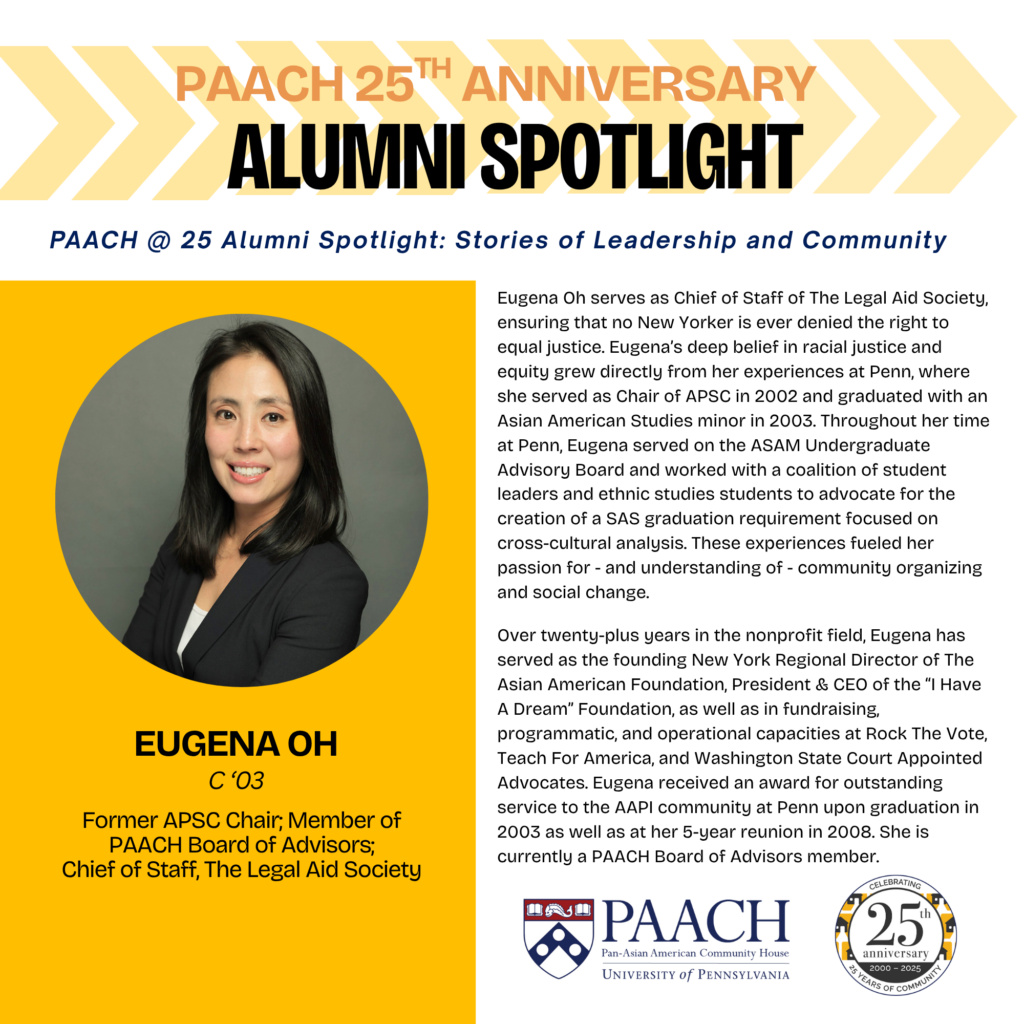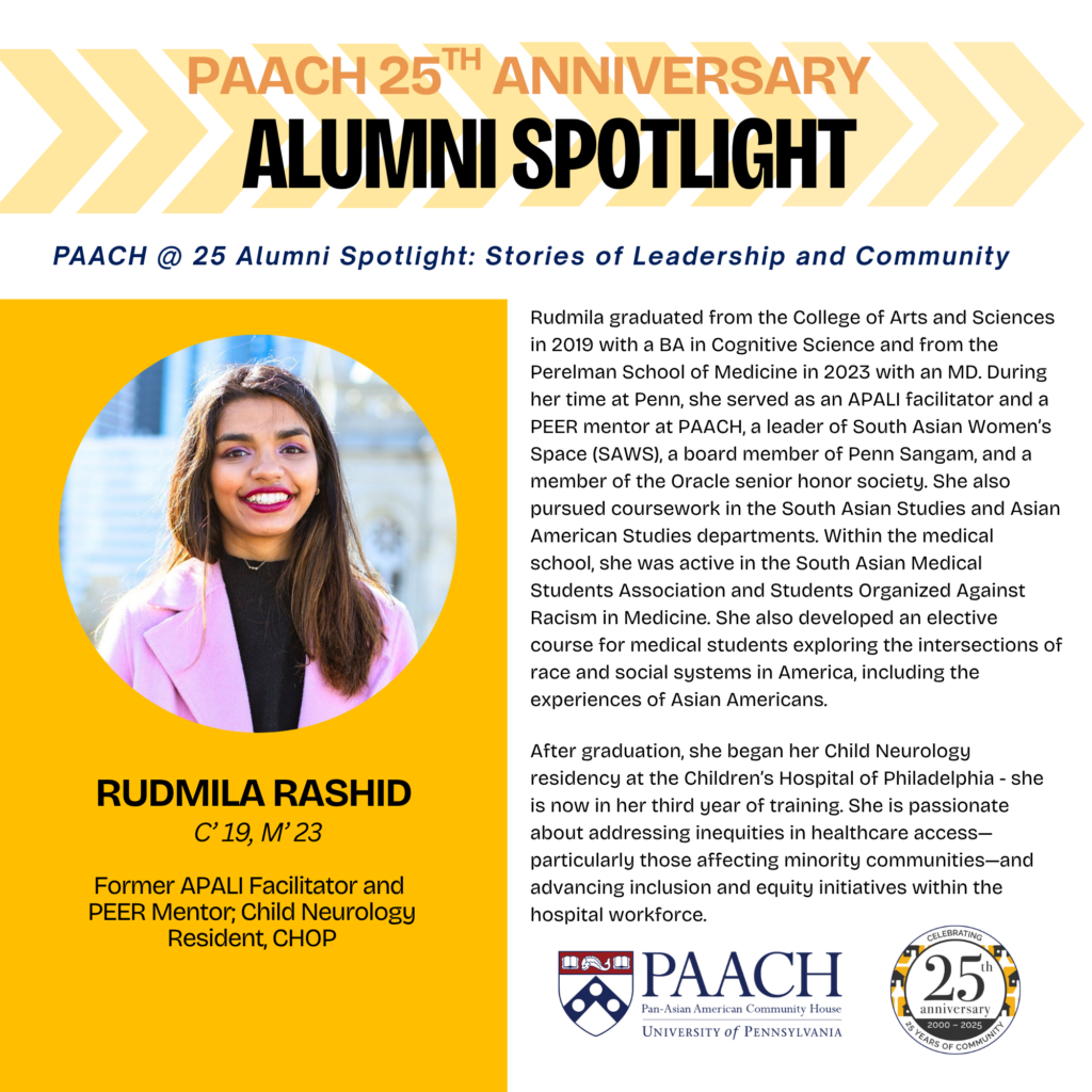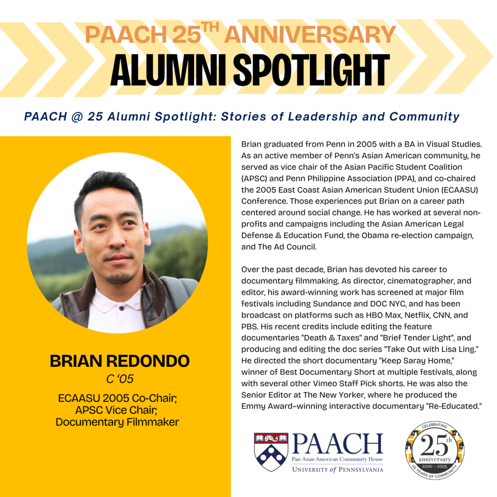As part of PAACH’s 25th Anniversary, the Alumni Spotlight Program features 10–12 alumni whose dedication, advocacy, and leadership have shaped PAACH and the API community at Penn and beyond. Through themed panels and featured profiles, we celebrate their impact across generations and inspire current and future leaders.